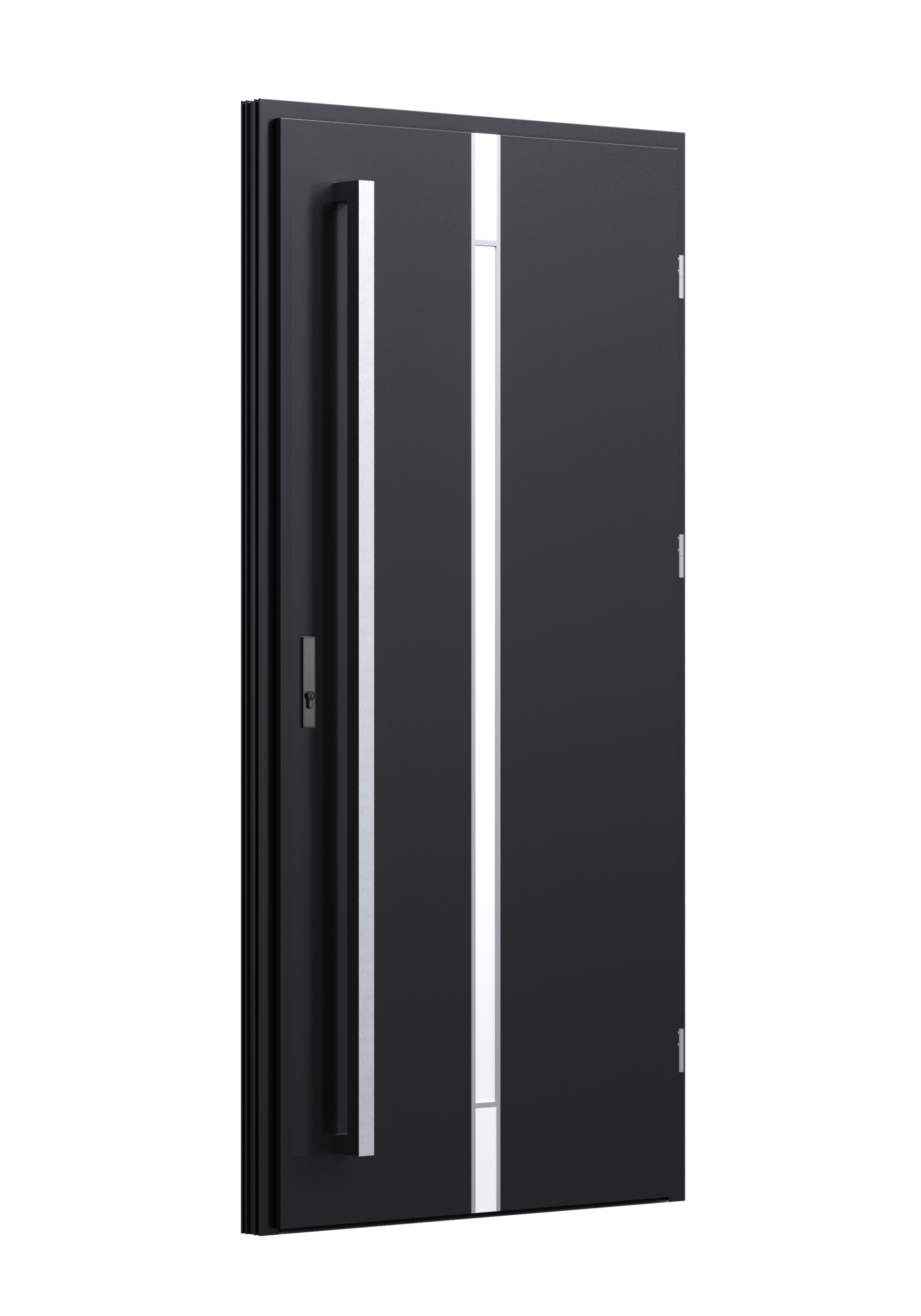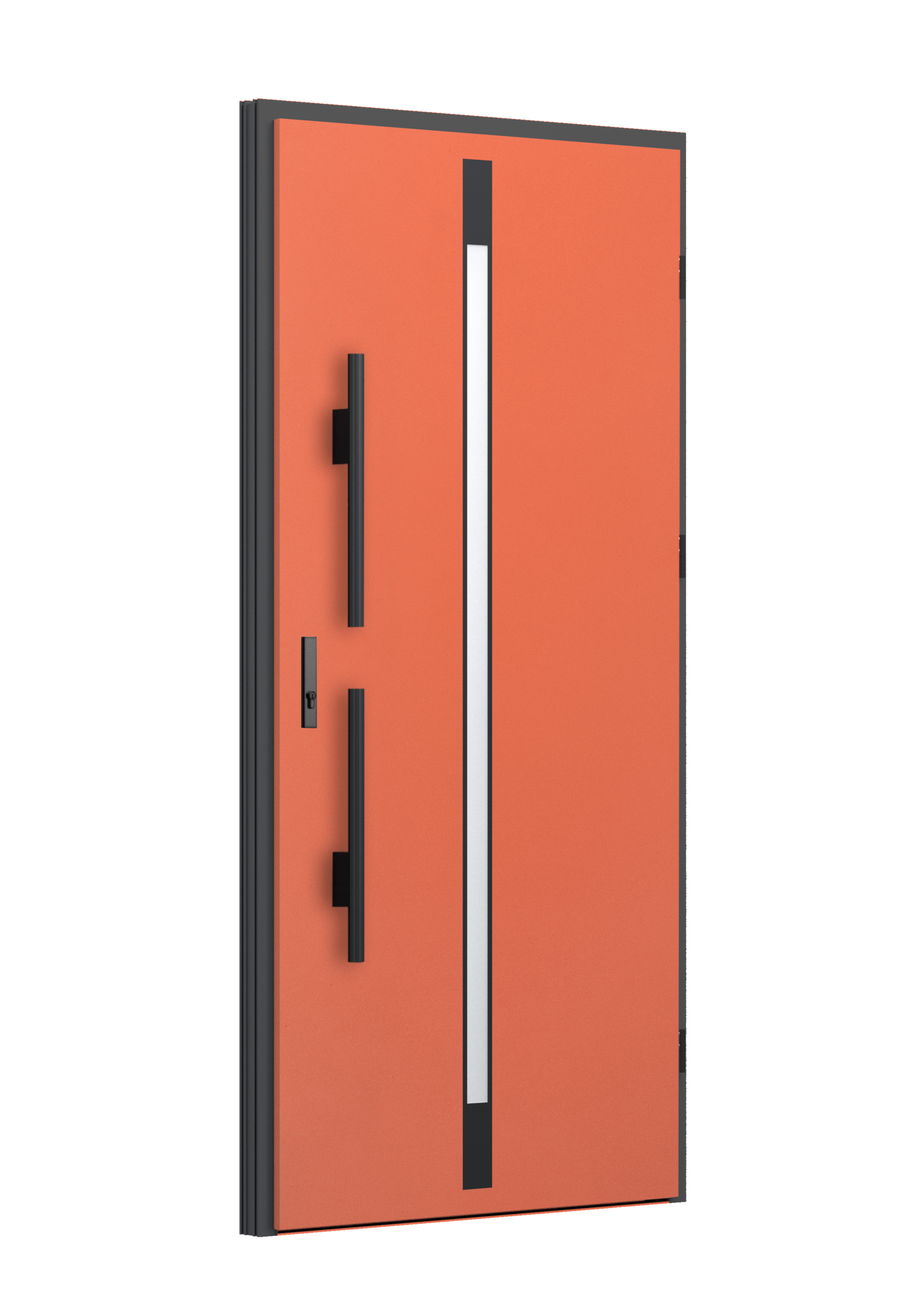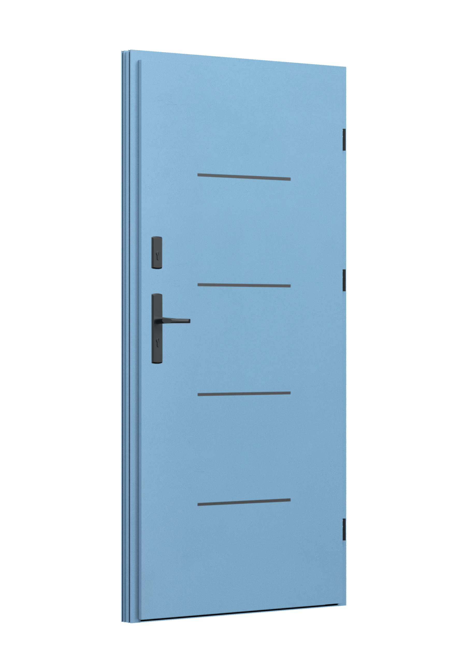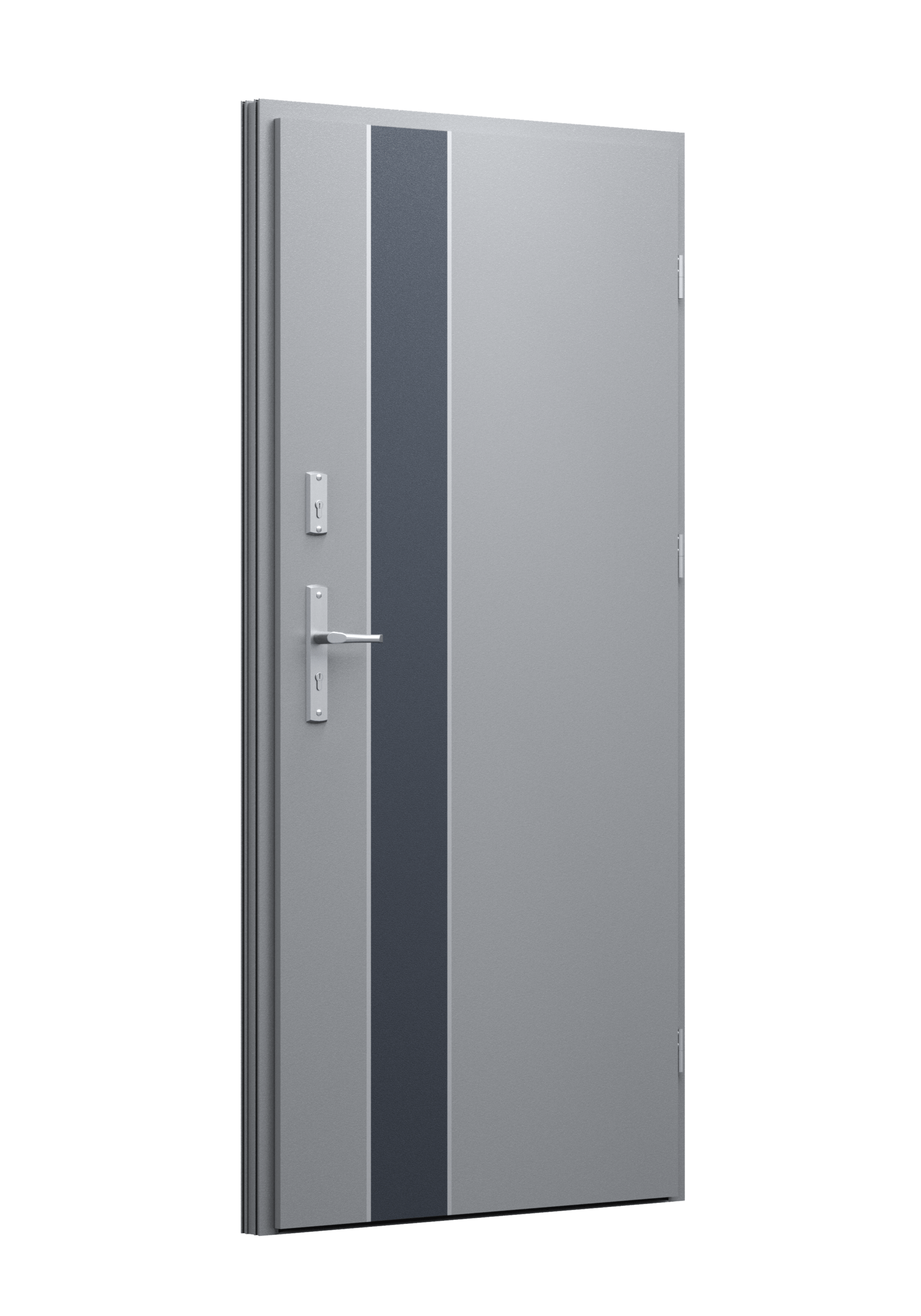 Drzwi z aluminiowymi intarsjami idealnie zlicowanymi z powierzchnią skrzydła. Geometryczny, uporządkowany rytm podkreśla nowoczesny charakter. Minimalizm, który odkrywa detale dopiero z bliska. Kolekcja Future pozwala świadomie pracować kolorem. Wariant „mixkolor” umożliwia zestawienie różnych barw w obrębie jednego skrzydła. Swoboda konfiguracji daje pełną kontrolę nad efektem i dopasowaniem drzwi do fasady budynku.