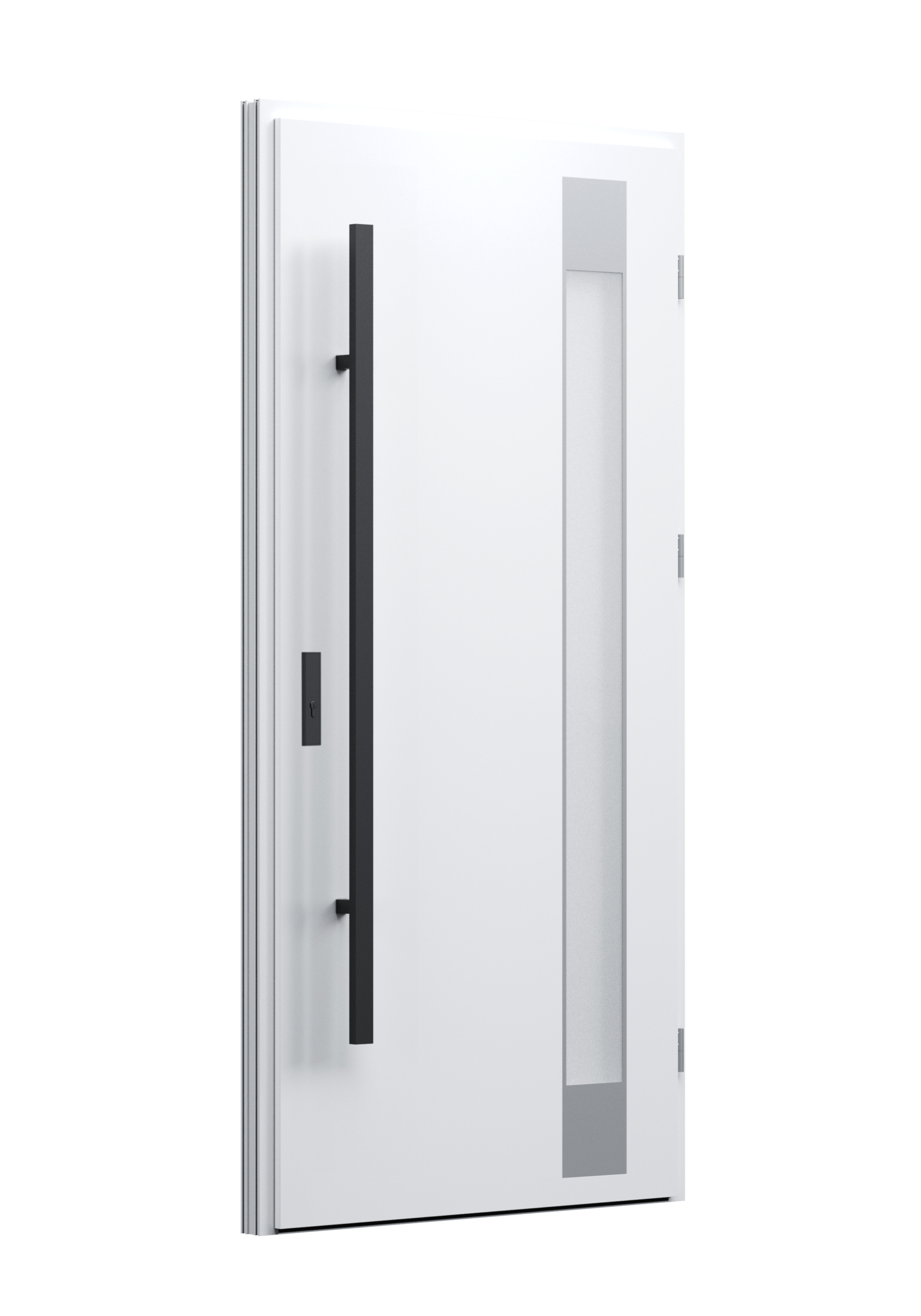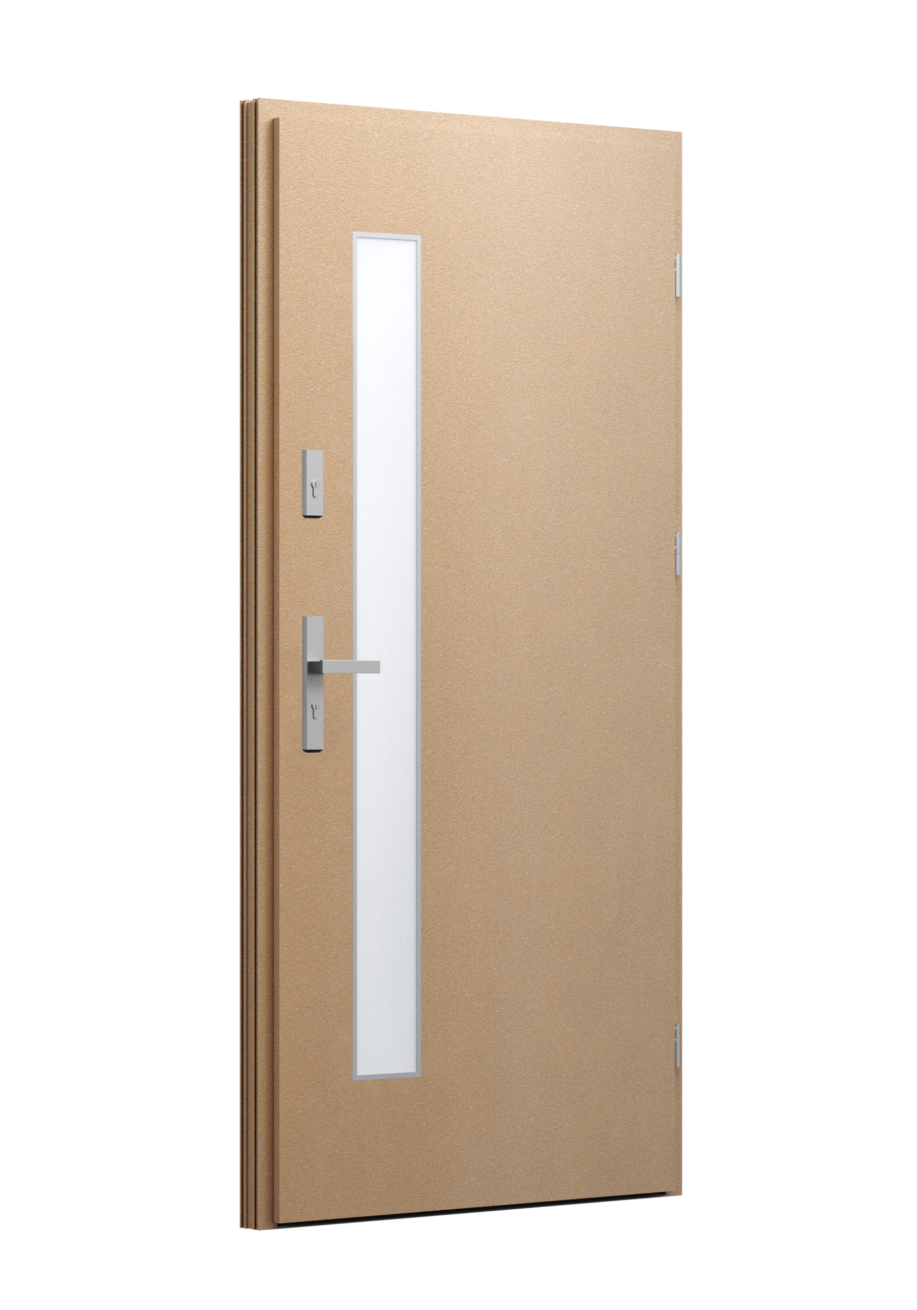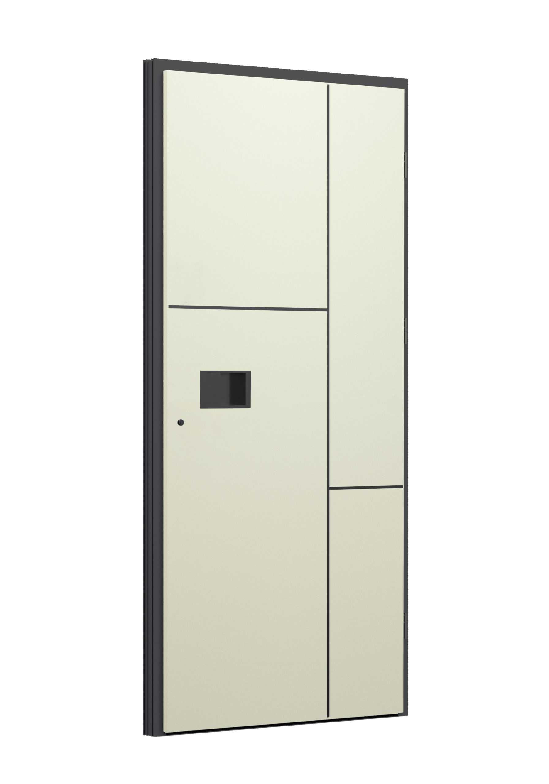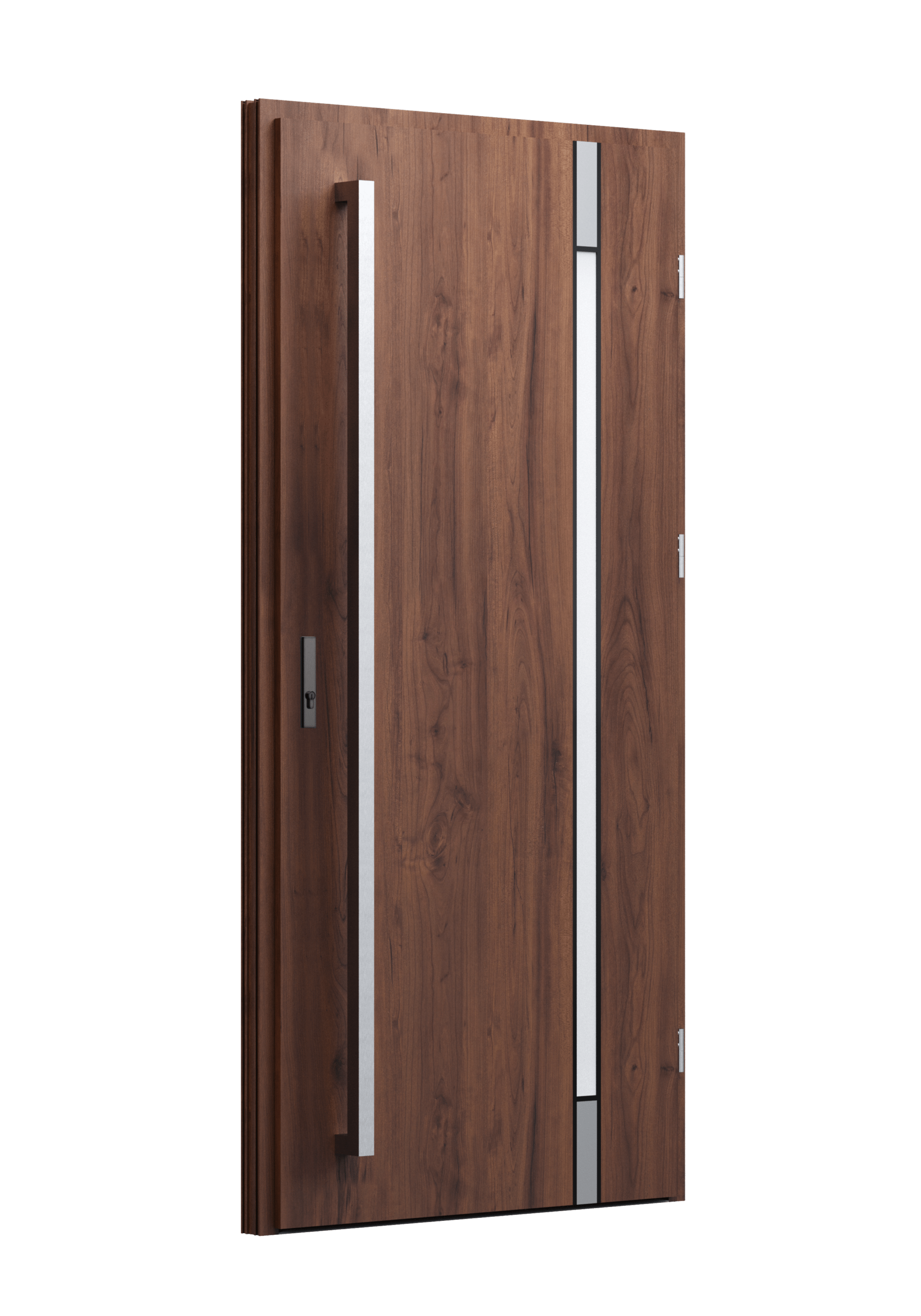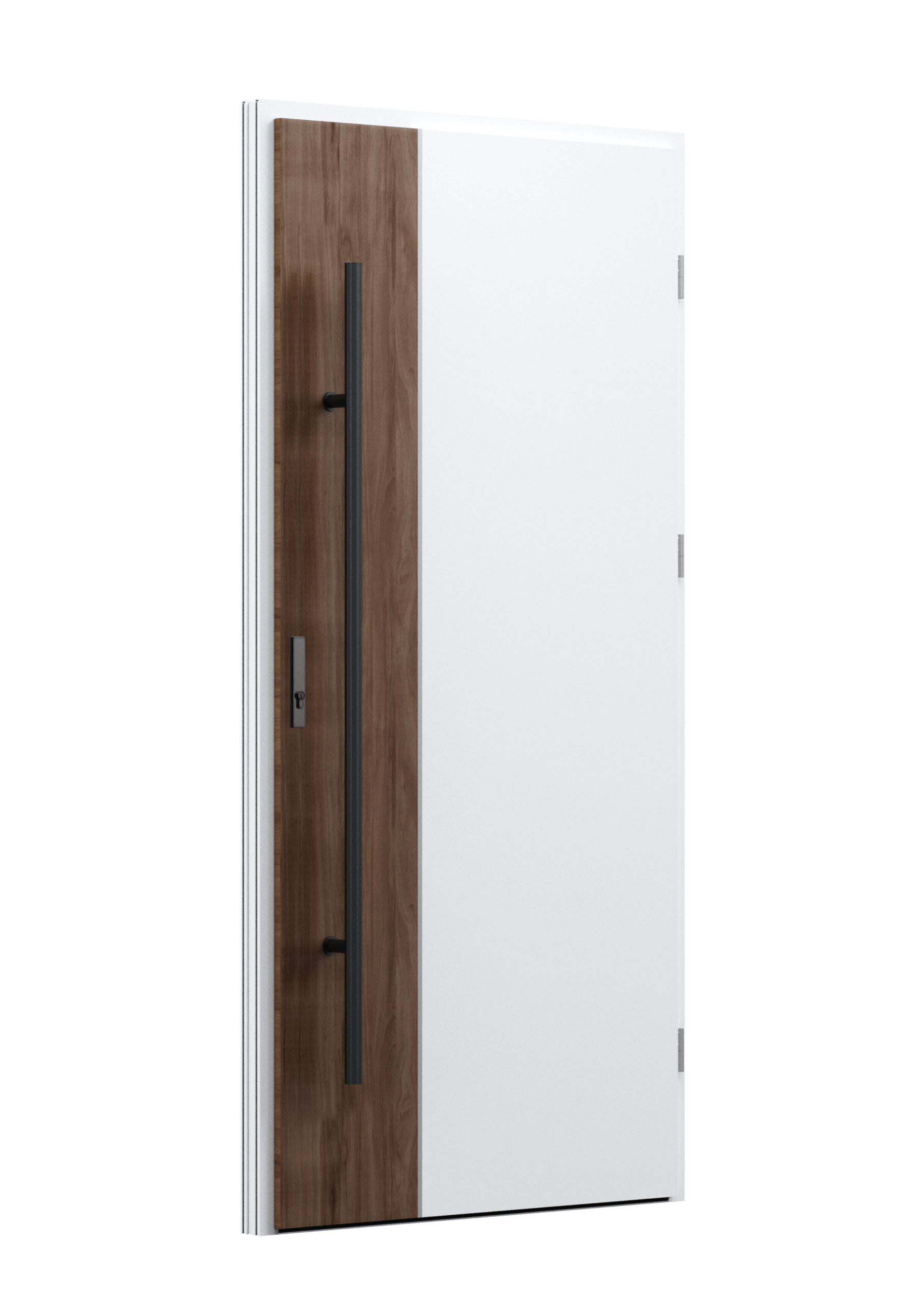 Drzwi z aluminiowymi intarsjami idealnie zlicowanymi z powierzchnią skrzydła. Geometryczny, uporządkowany rytm podkreśla nowoczesny charakter. Minimalizm, który odkrywa detale dopiero z bliska. Kolekcja Future pozwala świadomie pracować kolorem. Wariant „mixkolor” umożliwia zestawienie różnych barw w obrębie jednego skrzydła. Swoboda konfiguracji daje pełną kontrolę nad efektem i dopasowaniem drzwi do fasady budynku.