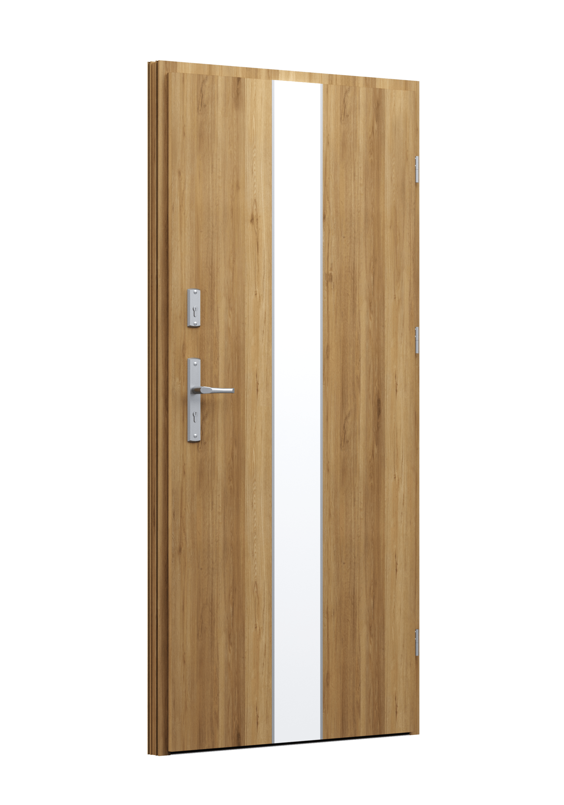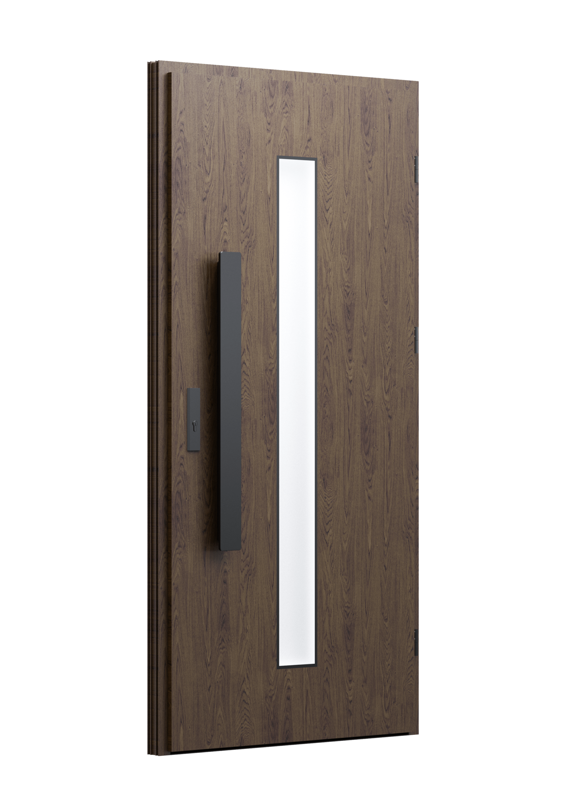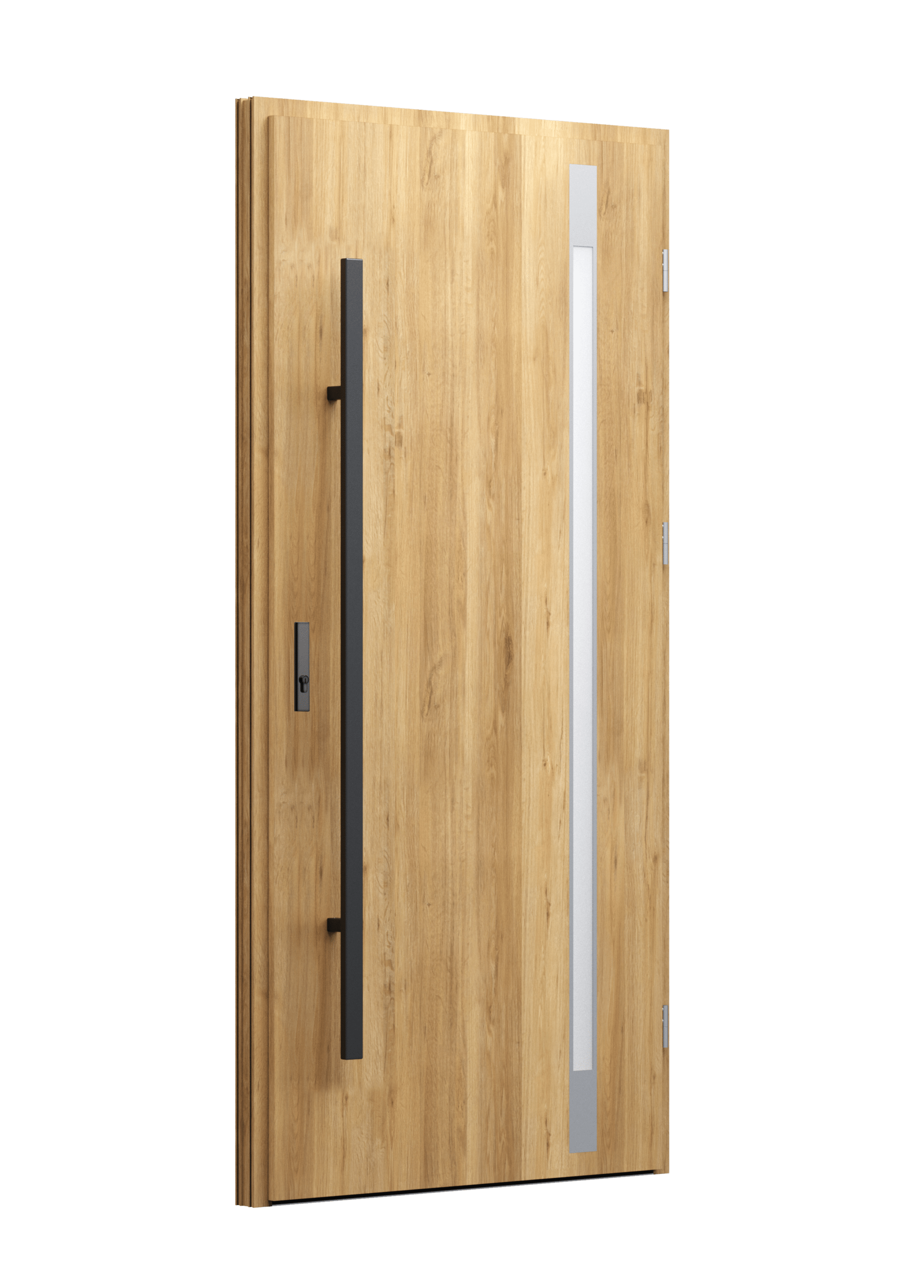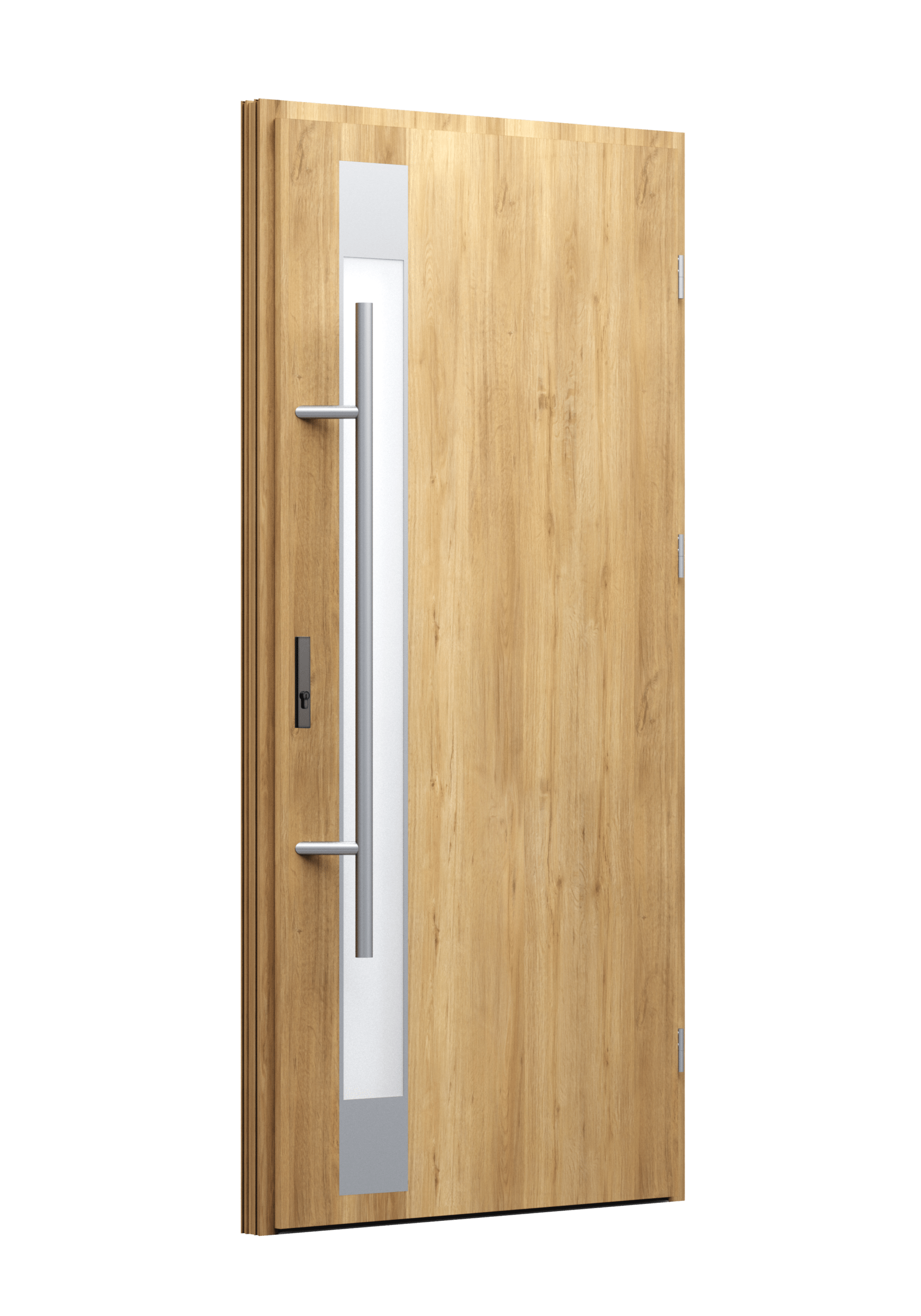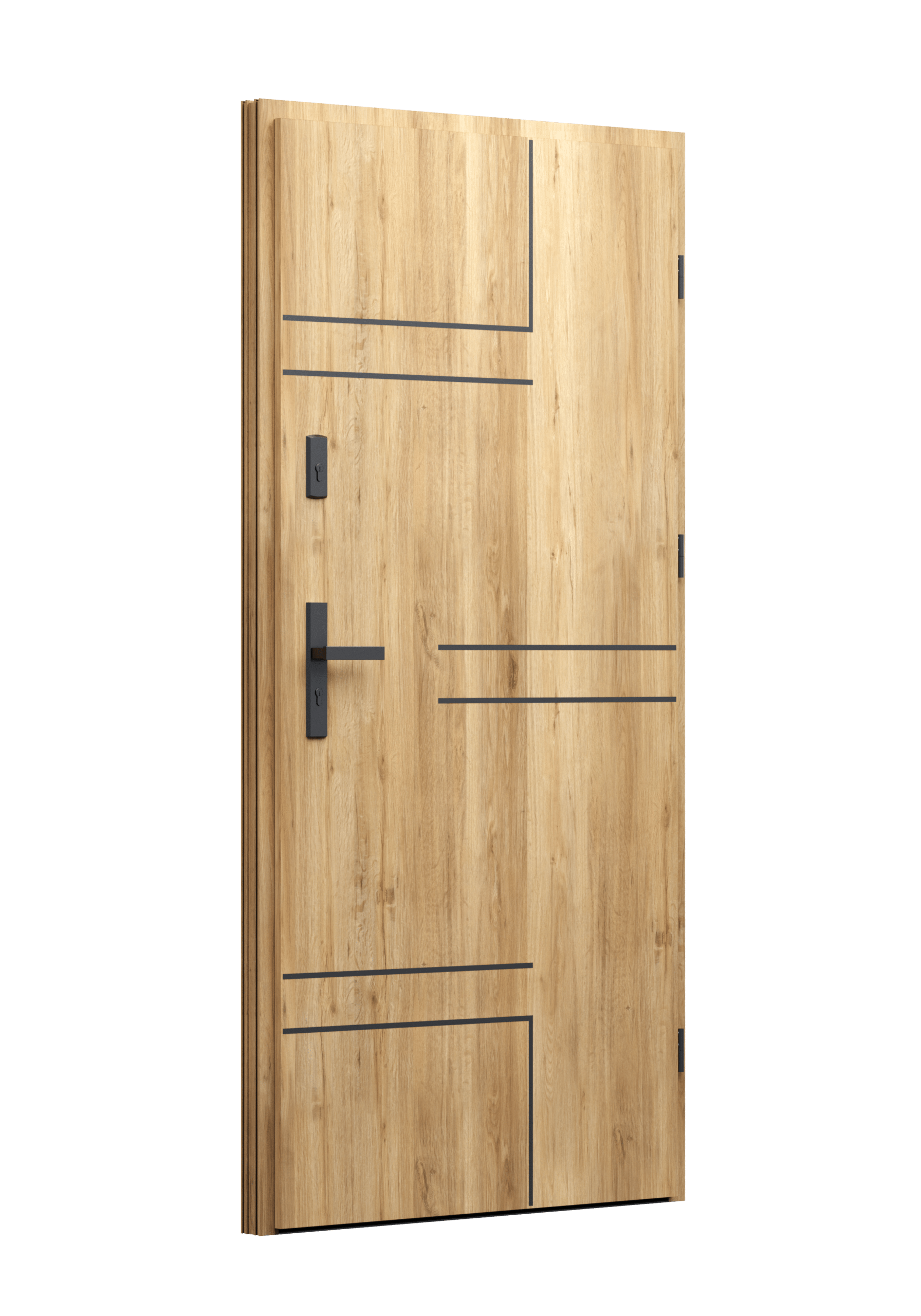 Drzwi z aluminiowymi intarsjami idealnie zlicowanymi z powierzchnią skrzydła. Geometryczny, uporządkowany rytm podkreśla nowoczesny charakter. Minimalizm, który odkrywa detale dopiero z bliska. Kolekcja Future pozwala świadomie pracować kolorem. Wariant „mixkolor” umożliwia zestawienie różnych barw w obrębie jednego skrzydła. Swoboda konfiguracji daje pełną kontrolę nad efektem i dopasowaniem drzwi do fasady budynku.