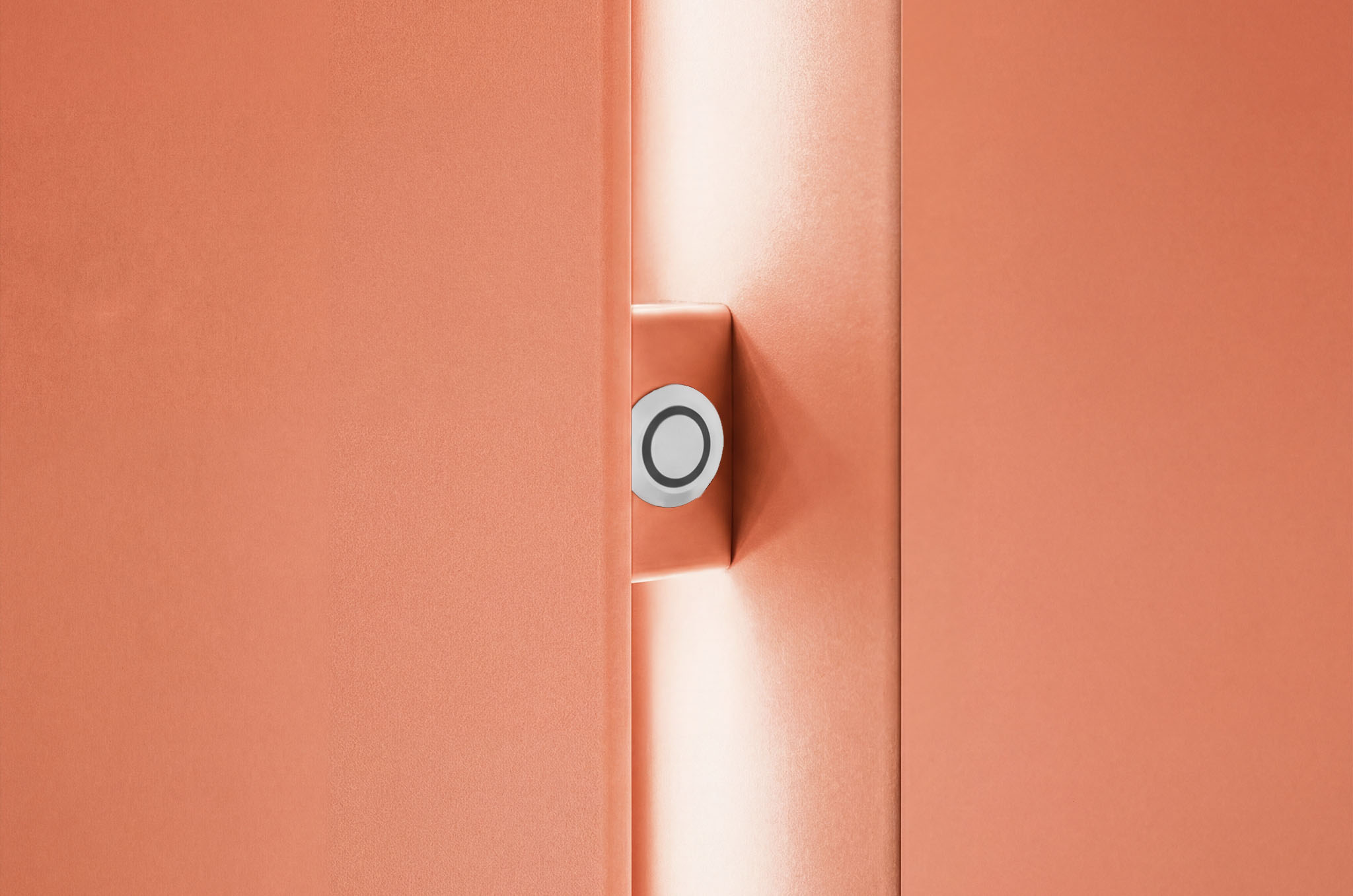 Subtelne światło eksponuje formę drzwi i dodaje im charakteru.